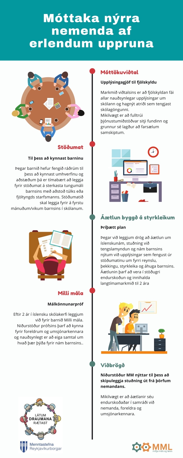 Þegar tekið er á móti nýjum nemendum á Íslandi skal alltaf kalla til aðila frá frístundaheimili eða félagsmiðstöð.