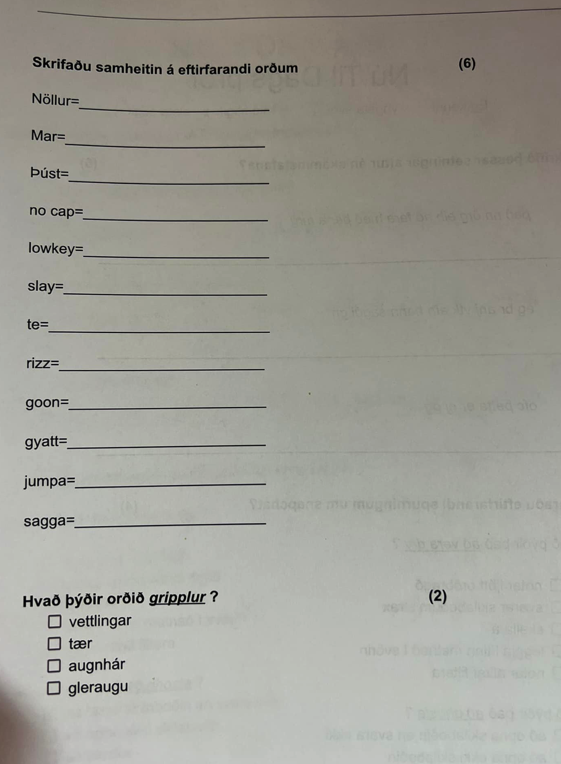 Máluppeldi felur í sér að