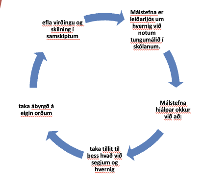 „Mikilvægt er að grunnskólar marki sér málstefnu á grundvelli aðalnámskrár og íslenskrar málstefnu sem Alþingi hefur samþykkt og að henni sé fylgt í öllum námssviðum.“