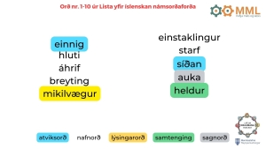 Listinn ætti að vera skyldulesning allra grunnskólakennara þar sem hann byggir á tíðni orða í íslensku lesmáli. Orðin eru flokkuð eftir tíðni og þau eru greind niður á orðflokka. Það er áhugavert að skoða einstaka orðflokka út frá tíðni.