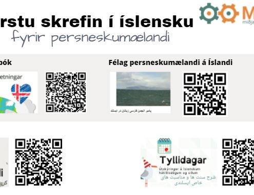 Stoðir með QR kóðum fyrir ólæsa á íslenskt stafróf