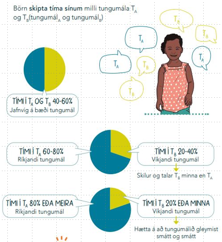 Til þess að læra nýtt tungumál þarf mikinn tíma og marga ólíka aðila sem nota tungumálið markvisst í öllum samskiptum við barnið.