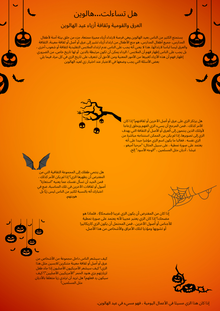 Hluti þess að búa til öruggt umhverfi fyrir skólabörn, öll skólabörn, er að koma í veg fyrir að krakkar klæðist sig í búninga sem vísa í annan kynþátt, uppruna eða menningu. Menning og kynþættir eru ekki búningar til klæðast sig í. Þetta þýðir ekki að fólk megi ekki klæðast sig í hefðbundnum fatnað annars menningarheims, heldur að fólk þurfi að sýna því skilning að klæðnaður/búningur getur tengst trúarbrögðum eða átt sér sérstaka sögu. Það er nauðsynlegt að sýna því skilning að slíkur fatnaður sé síður viðeigandi en aðrir og rétt að kynna sér sögu búningsins hverju sinni.