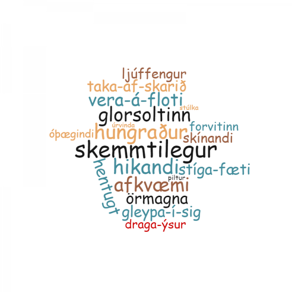 Á meðfylgjandi mynd má sjá nokkur orð úr bókum fyrir miðstig grunnskóla