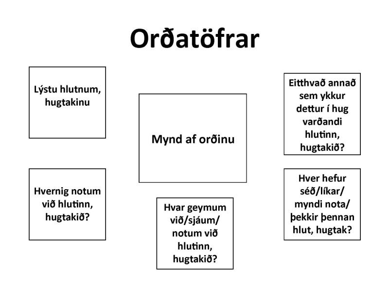 - Hvar geymum/sjáum/notum við hlutinn, hugtakið?