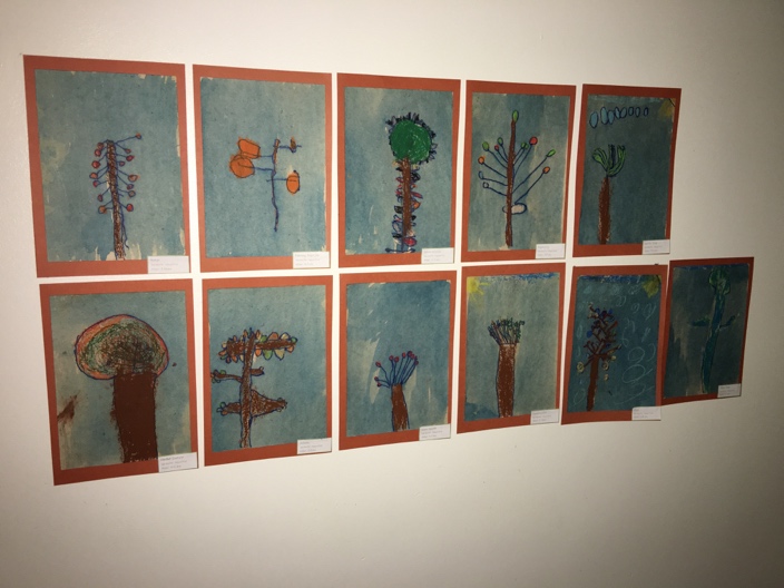 Þau rita sína upplifun með því að skapa sitt tré á pappír og túlka þar með litina sem þau sjá og hvernig tréð lítur út eftir árstíðum.