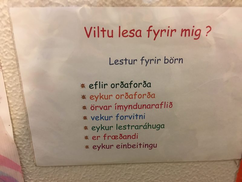 Í leikskólanum Suðurborg má sjá þessa spurningu uppi á vegg: Viltu lesa fyrir mig?